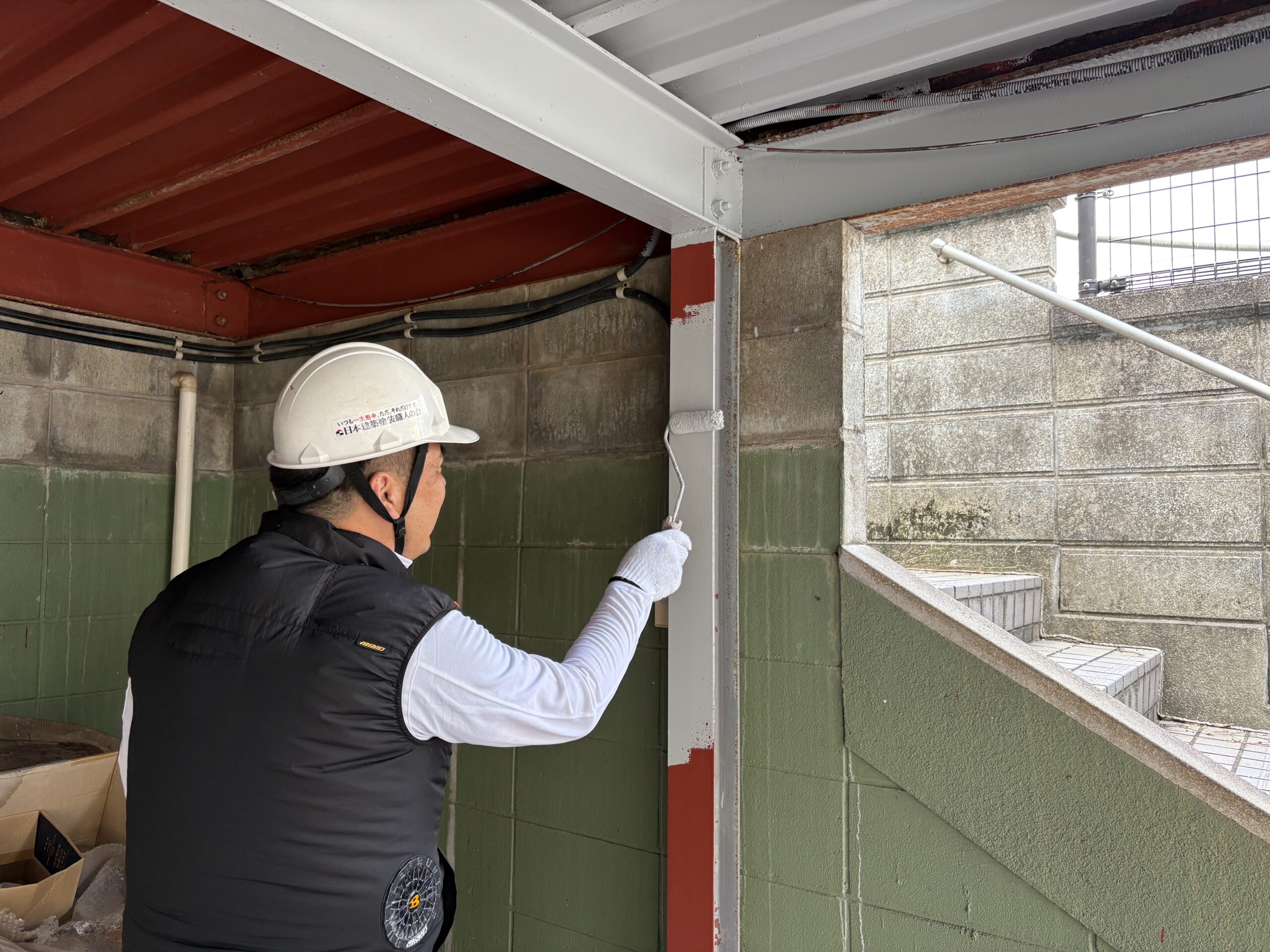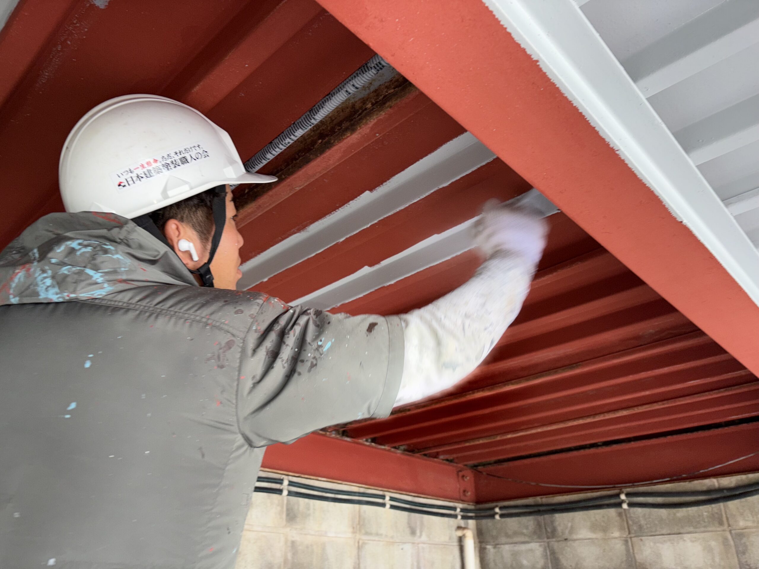 丁寧にサビを落としてから、下塗り(サビ止め塗装)→上塗り(シリコン塗装)と工事を進めていきます。
