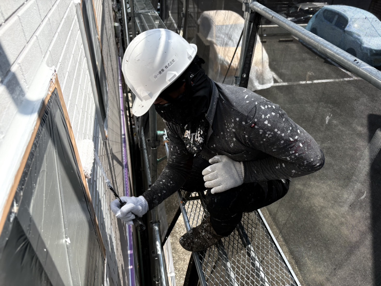 今日は東区千早のアパートの外壁塗装。下塗りをしていました。